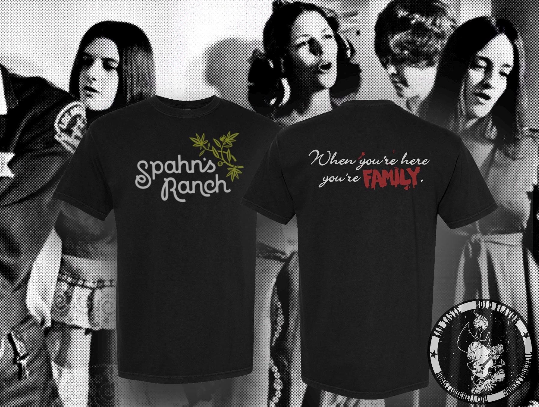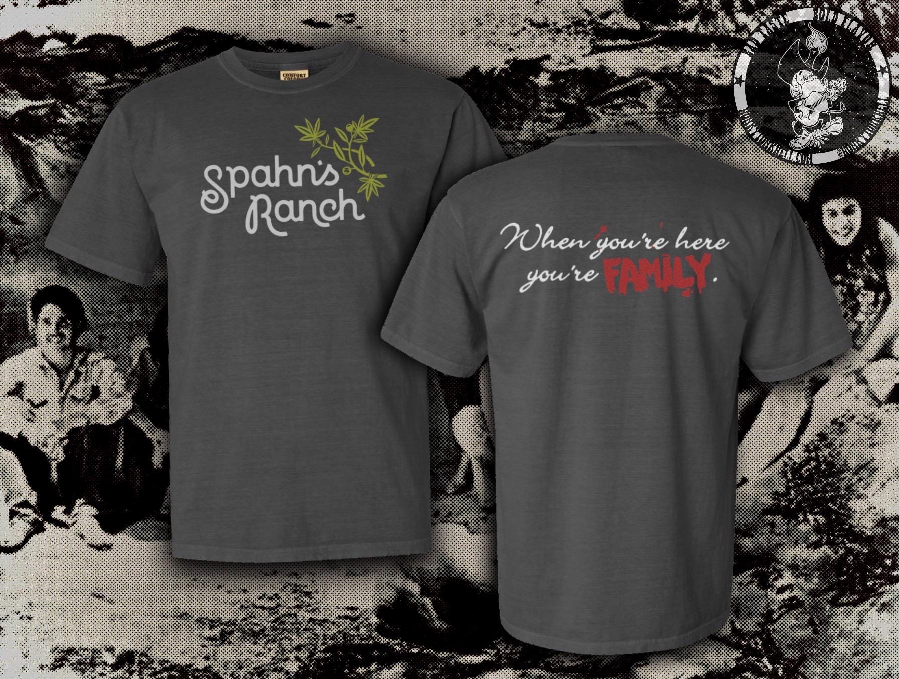 Another cult drop inspired by Spahn’s Ranch- the Western movie set made infamous by the Manson Family. Two-color print on both the front and back. Printed on Comfort Colors (White, Black, or "Pepper") for a vintage look with modern sizing -they tend to run a little large- size chart in photos).